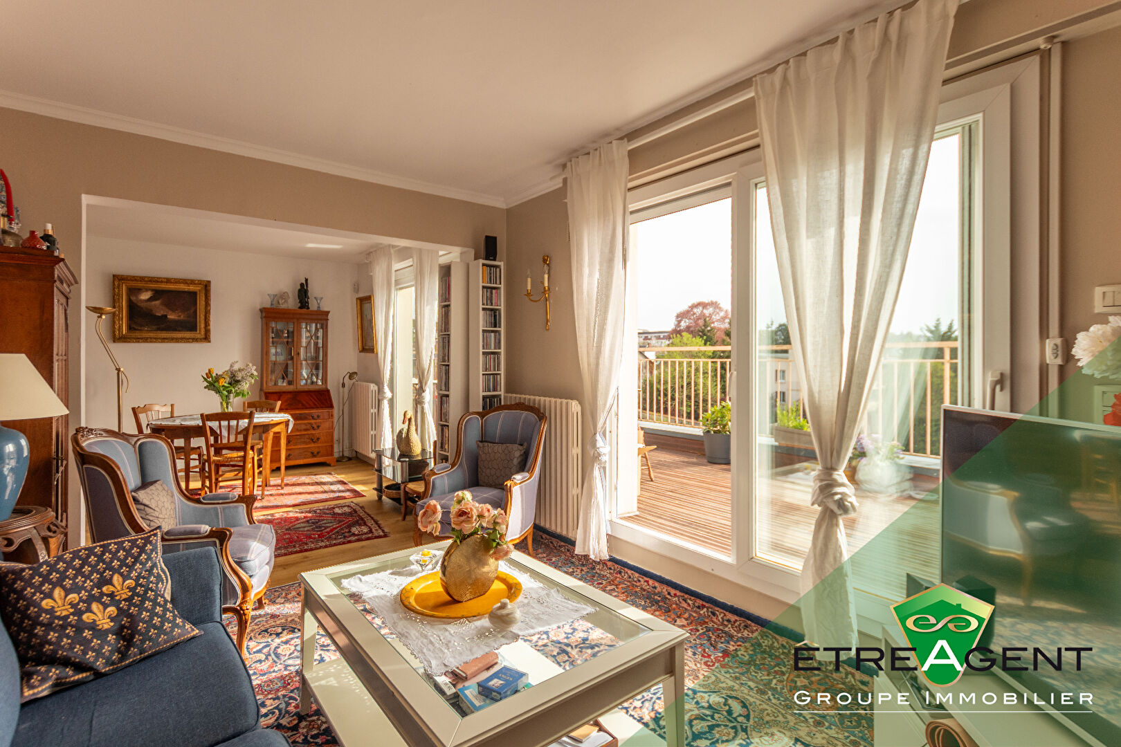 Au quatrième et dernier étage d’une résidence bien entretenue, cet appartement de 90 m² séduit immédiatement par sa luminosité, ses volumes et sa configuration traversante, offrant une circulation de lumière naturelle tout au long de la journée. Dès l’entrée, vous découvrez un espace de vie particulièrement agréable, composé d’un salon et d’une salle à manger distincts, créant une atmosphère à la fois conviviale et élégante.