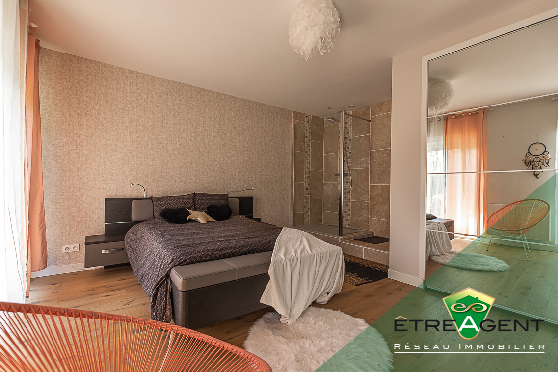 Cette maison est composée d’un SALON SALLE A MANGER donnant sur une CUISINE OUVERTE ENTIÈREMENT ÉQUIPÉE ET AMÉNAGÉE avec ÎLOT CENTRAL, QUATRE CHAMBRES dont une SUITE PARENTALE (avec SALLE D’EAU PRIVATIVE et DRESSING), un BUREAU, une SALLE DE BAIN comprenant DOUCHE et BAIGNOIRE, et un WC séparé.