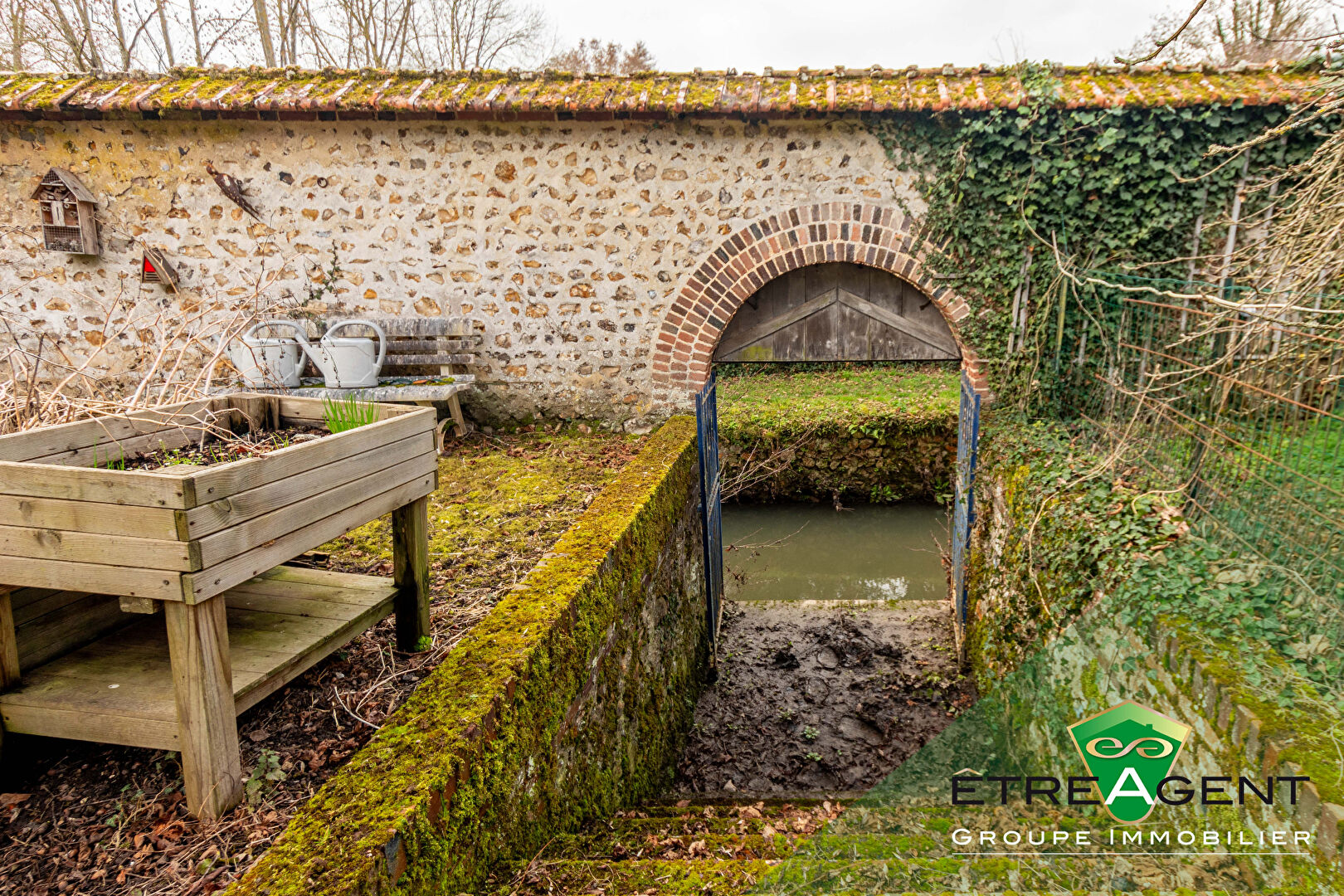 A l’extérieur, le jardin bordé par La Risle permet de profiter pleinement de l’environnement verdoyant et du calme du secteur. Deux garages fermés, situés en face de la propriété, complètent l’ensemble.
