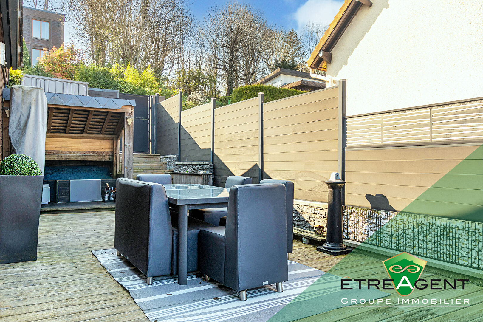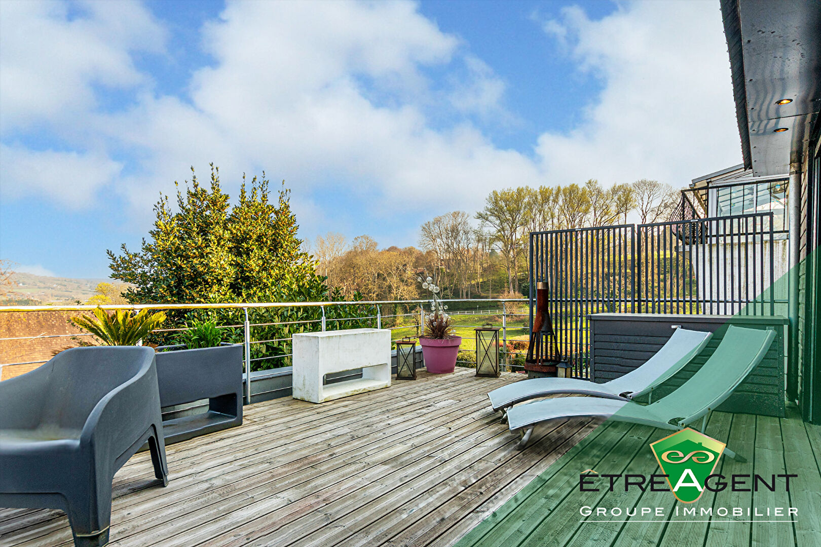 A l’extérieur, le bien dévoile tout son potentiel avec ses deux terrasses aménagées en cascade, véritables espaces de vie supplémentaires, permettant de profiter pleinement de la vue dégagée et des différentes expositions tout au long de la journée.